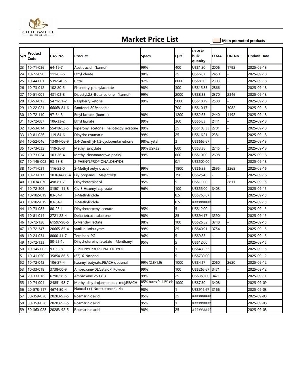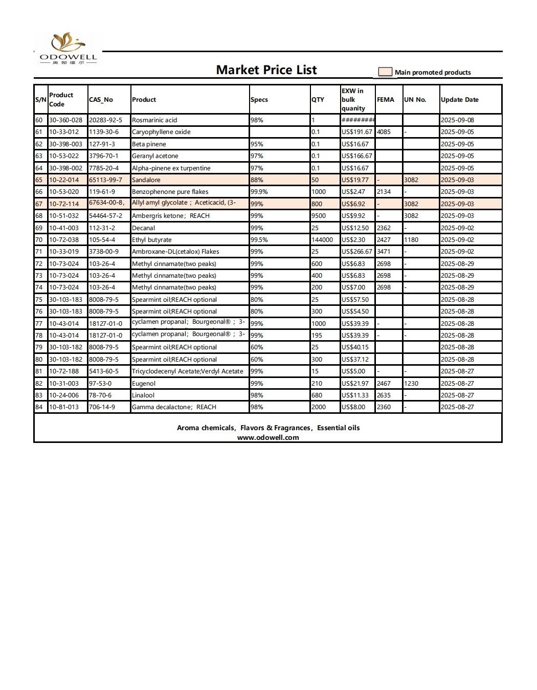 ఓడోవెల్-మార్కెట్ ధర జాబితా -2025.8.27-2025.09.29