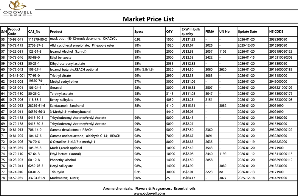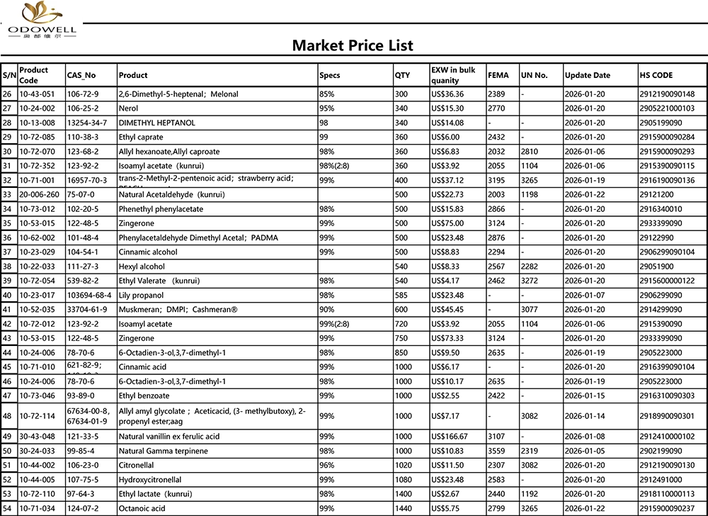 ఓడోవెల్-మార్కెట్ ధరల జాబితా-2025.12.27-2026.1.22