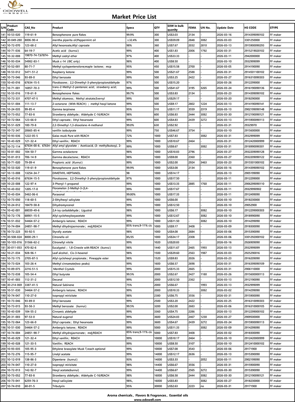 ఓడోవెల్-మార్కెట్ ధరల జాబితా-2026.3.1-2026.3.31